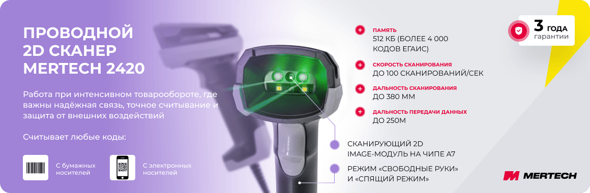 На сайте компании MERTECH вы можете купить проводной сканер штрих-кода MERTECH 2420 P2D по цене от производителя. Оборудование поставляется с официальной гарантией 3 года и доставкой по всей России. Оставьте заявку, и специалисты помогут подобрать решение под ваши задачи.