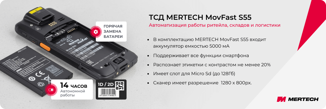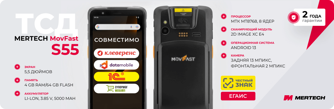 Оставьте заявку на сайте, чтобы заказать ТСД MERTECH MovFast S55 по цене от производителя